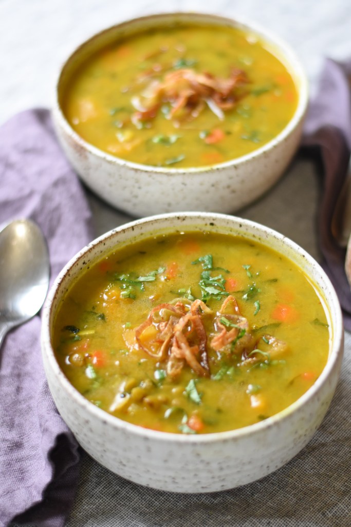 My understanding is that authentic dals usually involve blooming whole spices. This soup is also a thinner consistency than the dals I have personally seen, but dals can also be soupy. Cayenne is also not an authentic ingredient, but I use it when I make this soup because it’s something I always have. Here is a traditional dal recipe by Manali on her blog, Cook With Manali.
