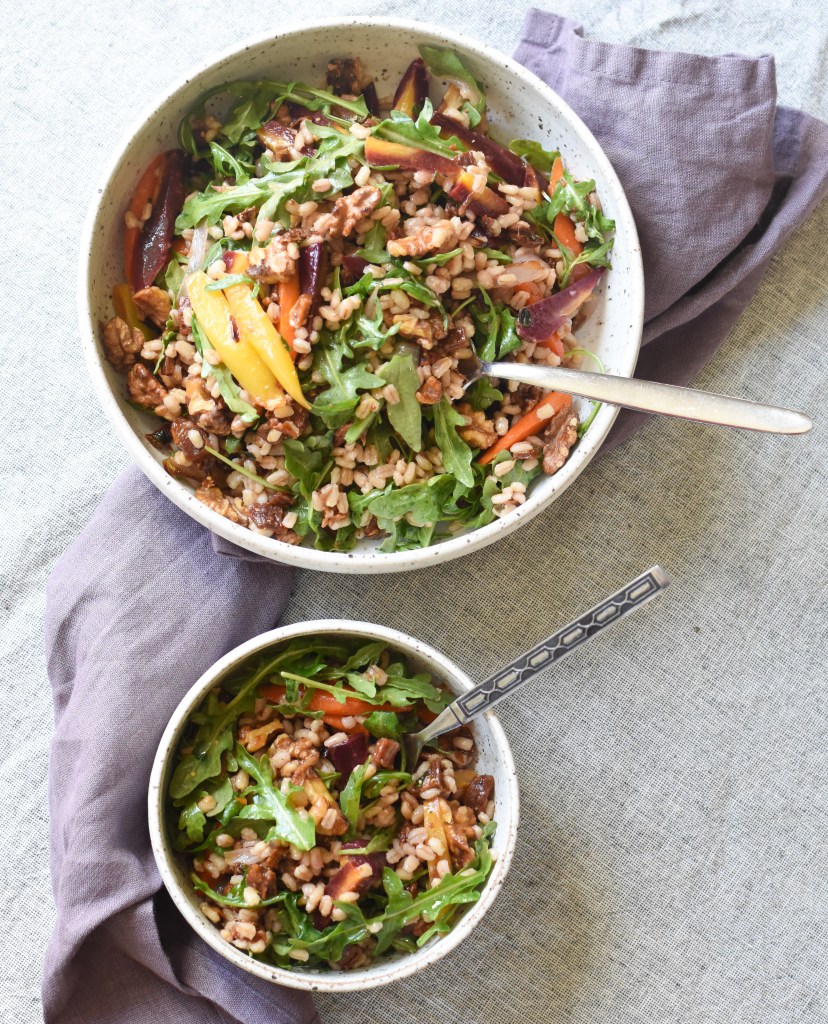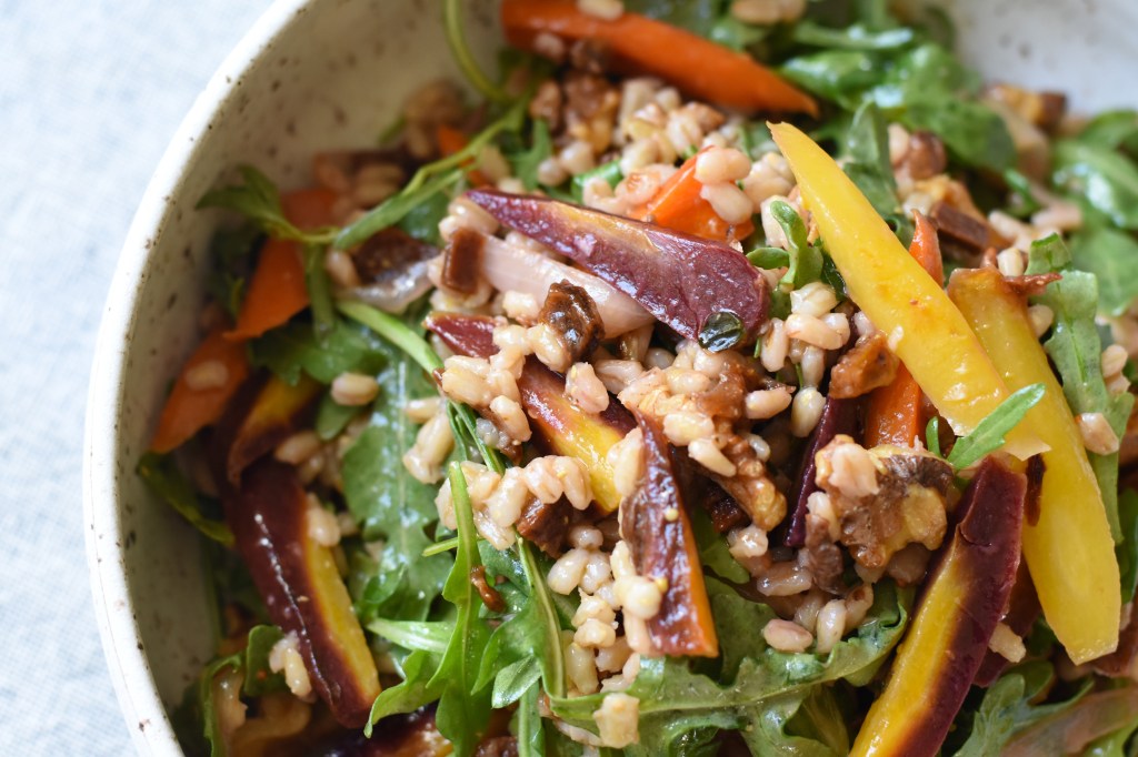 Roasted Carrot and Grain Salad (Serves 4 as a main, 6-8 as a side)