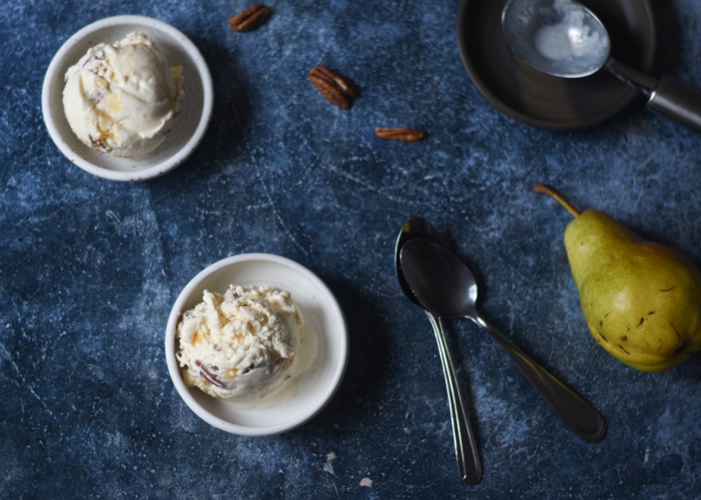 Caramelized Pear Pecan Ice Cream (makes a little more than a quart)