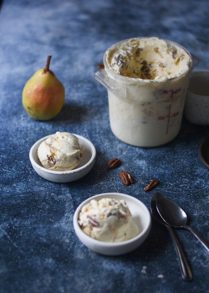 I made this caramelized pearo and pecan ice cream, and it was fantastic! The pear flavor really came through, and I loved the crunchy pecans.