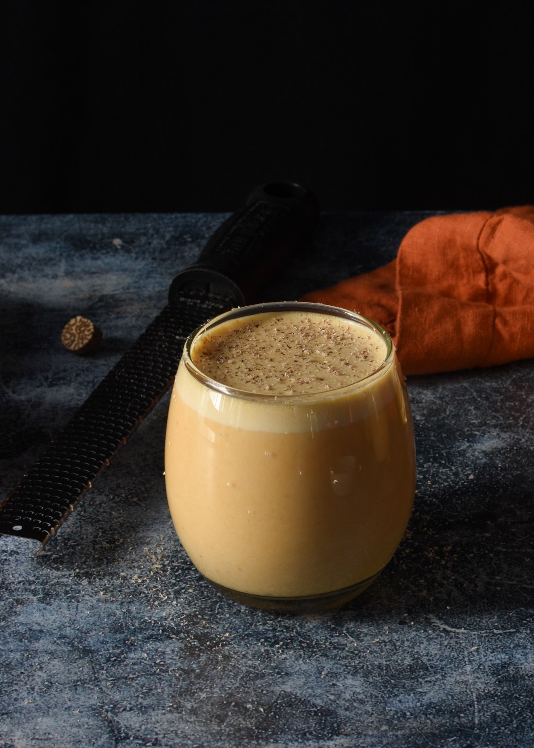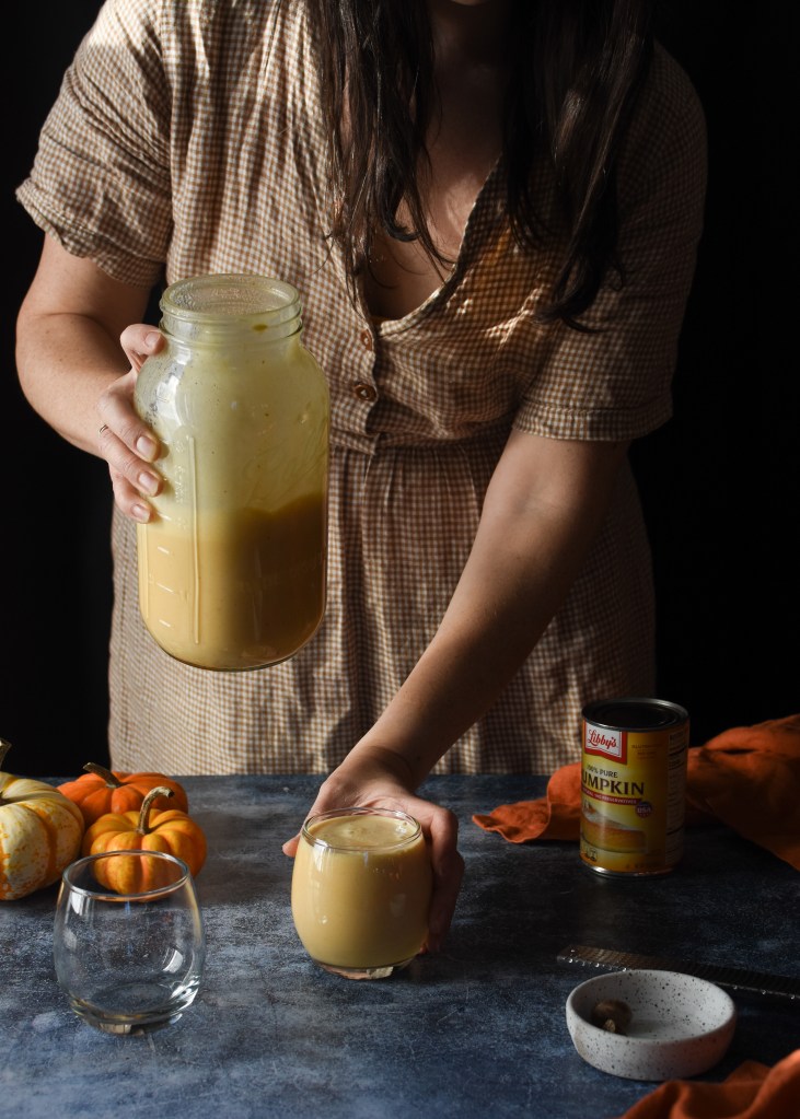 - Chill if desired or drink immediately. When ready to serve, either gently whisk to reincorporate the egg whites as they will have a tendency to rise to the top. You want to make sure each serving has some of the the creamy pumpkin eggnog and the foam. Or you can put it in a jar and shake it, and then pour from there.