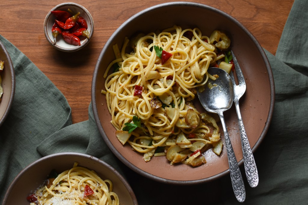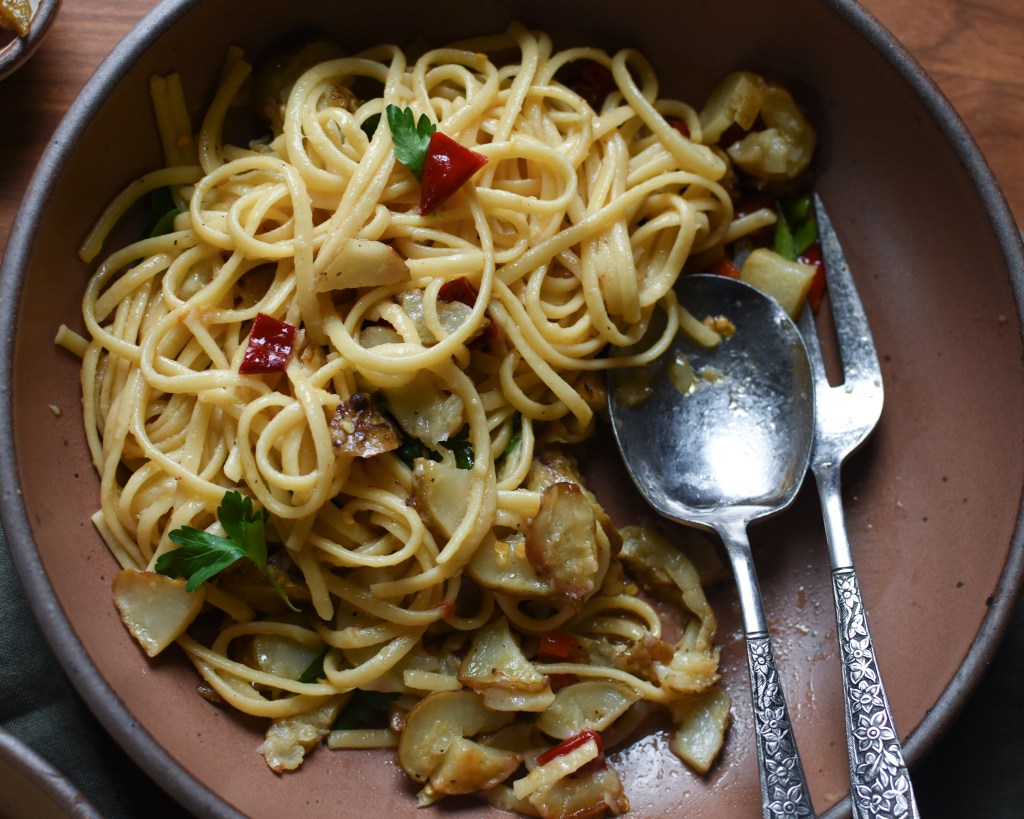 Linguine with Roasted Sunchokes and Calabrian Peppers