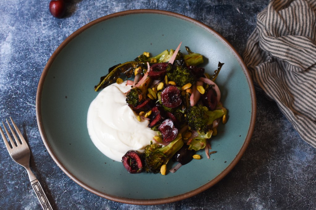 Roasted Broccoli Salad with Cherries (Serves 2 as a main, 4 as a side)