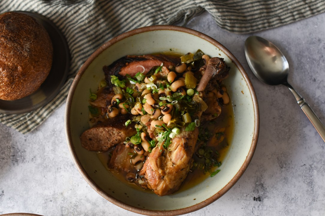 Black eyed peas are thought to bring luck to those who eat them on New Year’s Day. This preparation is so rich and flavorful, even those who don’t need luck can enjoy this dish. Although I put cassoulet in the title, this recipe is largely influenced by African American and Southern cuisine. Black eyed peas